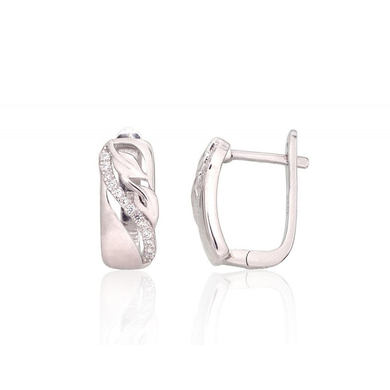 Sidabriniai auskarai ant cilindrinės spynos 2204225(PRh-Gr)_CZ, Sidabras 925°, rodis (padengti), Cirkonai